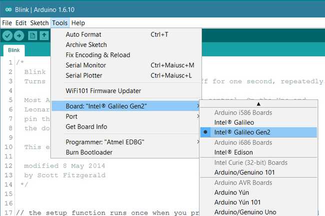 Use your Intel® Galileo Gen2 on the Arduino Desktop IDE